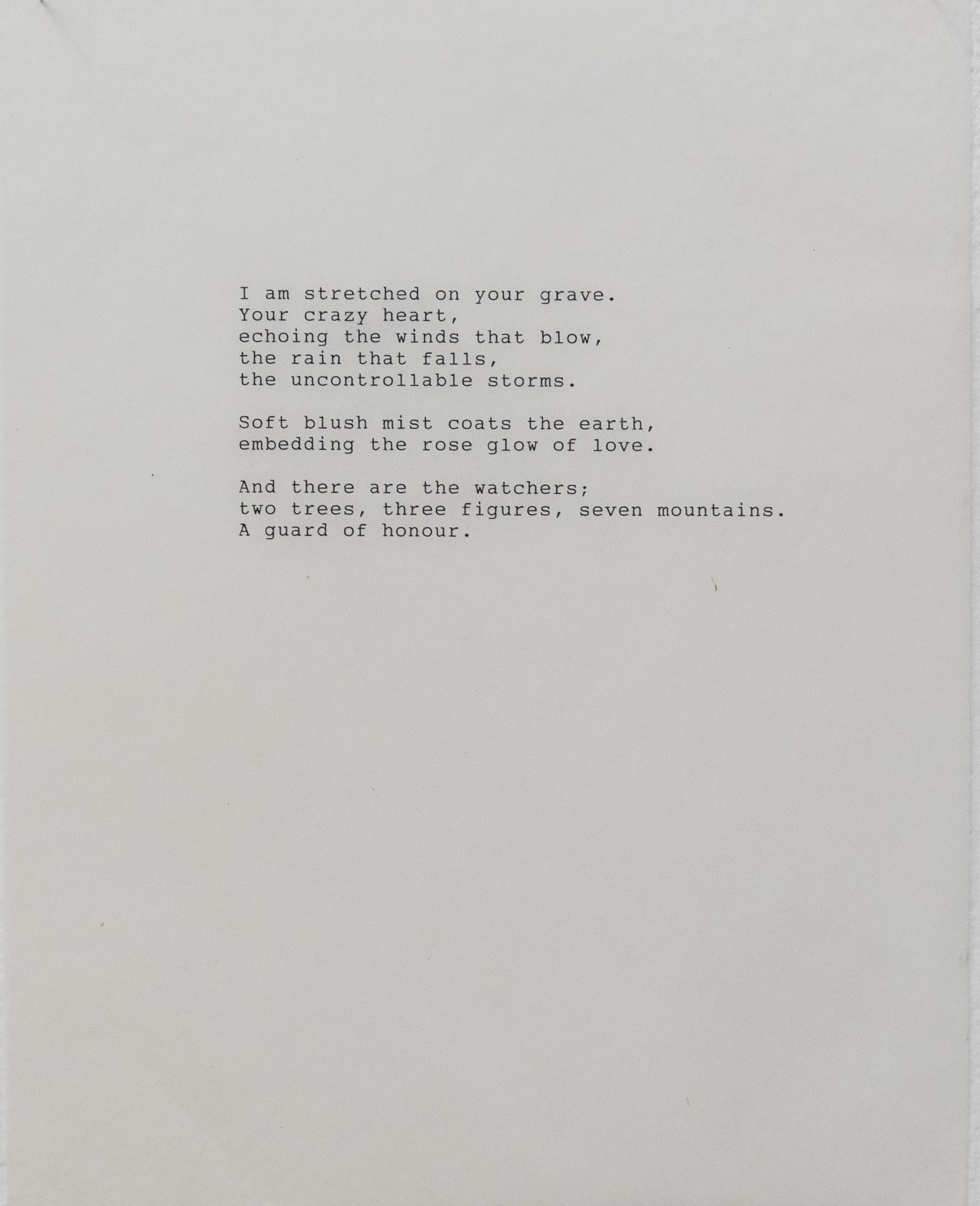 Untitled (2023) Graphite on Paper – 34x28cmHeavy are the Seas (2023) Graphite on Paper – 24x21cmInstall Image from ‘Lucent’ at Uillin West Cork Arts Centre, Cork – 2023 (alongside work by Tjibbe Hooghiemstra)Untitled (2023) Graphite on Paper – 25x 22cmSilent, Grave (2023) Graphite on Paper – 24x21cmWaiting IV (2023) Graphite on Paper – 54x30cmUntitled (2023) Graphite on Paper – 32x26cmInstall Image from ‘Quiet Wanders Laughing’ at Hyde Bridge Gallery, Sligo – 2023 (alongside work by Doris Rohr and Daniel Coleman)I am Stretched on Your Grave (2023) Silverpoint on Paper – 26x21cm